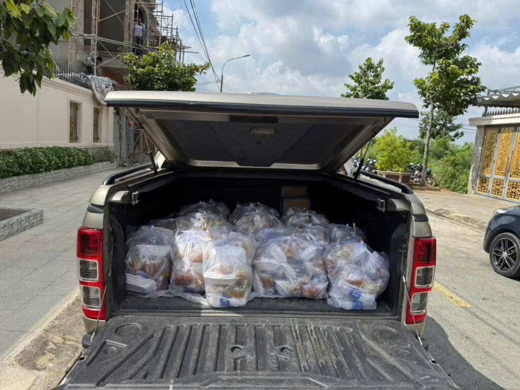 Ngay từ sáng sớm, không khí tại khu vực chuẩn bị cơm đã rộn ràng. Anh chị em công ty đã cùng nhau tham gia vào từng công đoạn: từ sơ chế thực phẩm, nấu, đóng gói, cho đến vận chuyển và trực tiếp trao tận tay bà con. Từng phần cơm được chuẩn bị chỉn chu, đảm bảo chất lượng và vệ sinh an toàn thực phẩm.